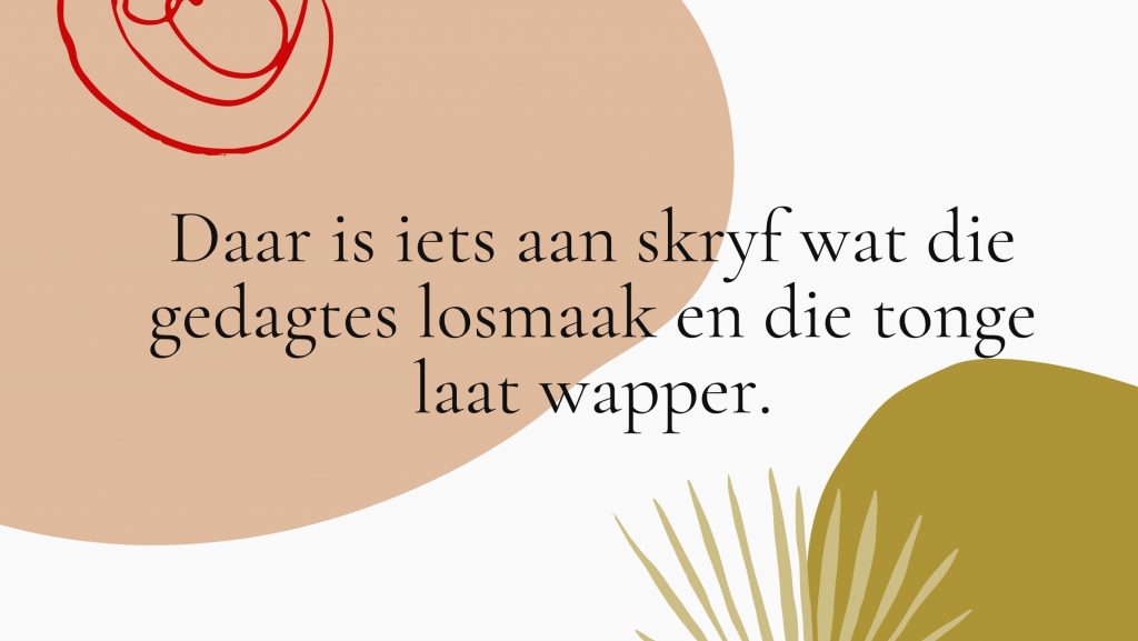 Daar is iets aan skryf wat die gedagtes losmaak en die tonge laat wapper.