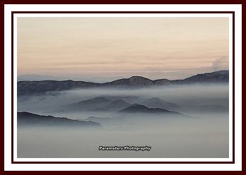 blou berge in grys