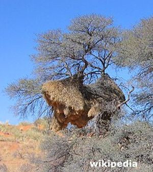 Die voël is ‘n groepvoël en koöperatiewe broeier. Hulle maak ‘n grasdaknes wat op ‘n paal (telefoonpale is gewild), windpomp of boom gebou word. Hulle bou die grootste nes van alle voëls en die nes kan tot 500 kamers hê]