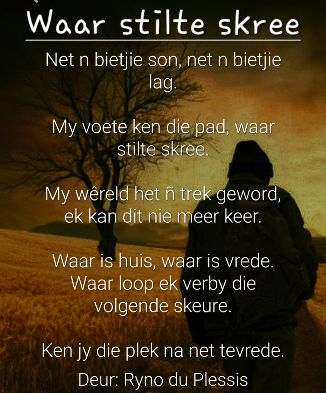 Waar is huis, waar is vrede, waar loop ek verby die volgende skeure.